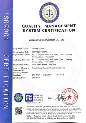 浙江歐騰服飾有限公司位于世界小商品之都-義烏。創(chuàng)立于2015年,是一家專(zhuān)業(yè)生產(chǎn)無(wú)縫針織運(yùn)動(dòng)服飾和內(nèi)衣的工貿(mào)一體企業(yè),擁有自主出口權(quán)。 工廠(chǎng)的占地面積約16000平方米 ,引進(jìn)了大型圣東尼、高騰等多種先進(jìn)的制衣設(shè)備300余臺(tái)。月產(chǎn)能可達(dá)90萬(wàn)件。 歐騰服飾每年投入近百萬(wàn)資金打樣開(kāi)發(fā)新產(chǎn)品,有著一支高素質(zhì)設(shè)計(jì)、技術(shù)員工隊(duì)伍。工廠(chǎng)先后通過(guò)了ISO 9001質(zhì)量管理體系認(rèn)證、BSCI認(rèn)證、GRS認(rèn)證、OEKO-TEX國(guó)際生態(tài)紡織品認(rèn)證等多項(xiàng)專(zhuān)利檢測(cè)報(bào)告。可提供OEM&ODM服務(wù)。歐騰服飾以一套完整、科學(xué)的質(zhì)量管理體系,生產(chǎn)的服裝從原材料紗線(xiàn)到成衣,質(zhì)量完全能夠滿(mǎn)足國(guó)內(nèi)、國(guó)際質(zhì)量要求。獲得了客戶(hù)一致好評(píng)。工廠(chǎng)先后獲得省科技型企業(yè)、國(guó)家高新企業(yè)、義烏市誠(chéng)信講信用單位、規(guī)上企業(yè)、信用AAA級(jí)等榮譽(yù)。
